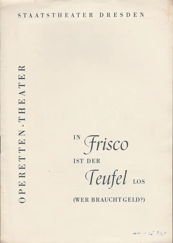 ( Wer braucht Geld ? ). Operette in vier Akten von Otto Schneidereit. Musikalische Leitung: Siegfried Franze. Inszenierung: Wolfgang Böttcher. Ausstattung: Eberhard Ahner. Choreographie: Rudolf Klüver. Mitwirkende: Karl-Heinz Märtens, Gardy Herzfeld, Karl-Horst Bohm, Ingeborg Kassner, Martin Kleber, Brigitte Peters, Fritz Steiner, Helene Gramont, Jürgen Frenz, u.a. - Theaterprogramm, Opernprogramm, Ballettprogramm, Musicalprogramm, Konzertprogramm, Theatermemorabilia, Programmhefte Sammlung, deutsche Theatergeschichte.