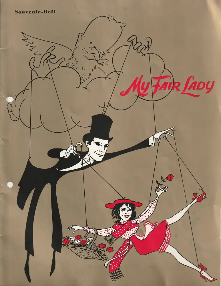 Nach Bernard Shaw ´s Pygmalion und dem Film von Gabriel Pascal. Buch: Alan Jay Lerner. Musik: Frederick Loewe. Regie: Sven Aage Larsen / Wolfgang Spier. Musikalische Leitung: Franz Allers / Alexander Rumpf / Peter Richter / Rolf Sahm. Choreographie: Erik Bidsted. Kostüme: Cecil Beaton. Bühne: Oliver Smith. Leiter der Ausstattung: H. U. Thormann. Mitwirkende: Karin Huebner / Sonja Ziemann / Irene Walter / Ingrid Schröder / Karola Ebeling, Wolfgang Lukschy / Paul Hubschmid, Friedrich Schoenfelder / Herbert Tiede / Kurt Mühlhardt, Arne Lindner / Jan Corduan / Franco Duval, Agnes Windeck / Käthe Haack, u.a. - Theaterprogramm, Opernprogramm, Ballettprogramm, Musicalprogramm, Konzertprogramm, Theatermemorabilia, Programmhefte Sammlung, deutsche Theatergeschichte.