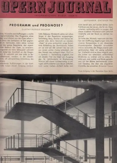 Opern Journal.- Deutsche Oper Berlin (Hrsg.) - Horst Goerges (Red.), Wilhelm Reinking (Bildred.): Opernjournal / Opern Journal - Nr. 1, erste Saison, September, Oktober 1961. Informationen, Bilder , Essays.