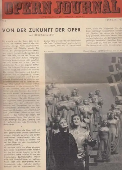 Monatl. Erscheinungsweise. Aus dem Inhalt: Ferruccio Busoni - Von der Zukunft der Oper / Alexander Berrsche - Ein Maskenball-ein Werk der Reife / Cesare Crispolti - Daten zur Entstehung von Verdis Maskenball / E. M. Arndt - König Gustav III. von Schweden / Gustav Rudolf Sellner - Carl Ebert zum 75. Geburtstag / Zur Geschichte des Theaterzettels / Das Porträt: Michel Raffaelli / Musikal. Chronik / Kuriosa / Bücher für den Opernfreund.