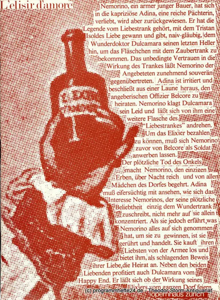 Opernhaus Zürich: Programmheft L' elisir d' amore ( Der Liebestrank ). Komische Oper von Felice Romani. Programmheft Nr. 8 / 25. Oktober 1980.