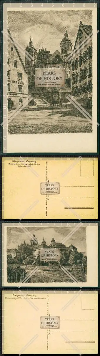 Orig. AK 2x Federzeichnung Weingarten bei Ravensburg Klosterkirche Hirsch Platz Kriegerdenkmal Kirche Benediktinerabtei 1933 M2022-04-14-190Orig. AK 2x Federzeichnung Weingarten bei Ravensburg Klosterkirche Hirsch Platz Kriegerdenkmal Kirche Benediktinerabtei 1933