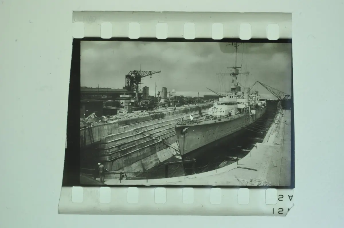 Orig. Dia 4x3,5cm - leichter Kreuzer Karlsruhe Königsberg-Klasse im Trockendock