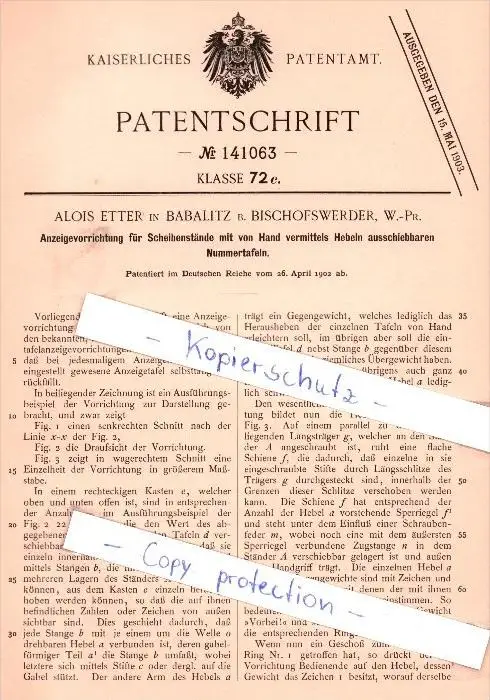 Original Patent - A. Etter in Babalitz b. Bischofswerder , W.-Pr. , 1902 , !!!
