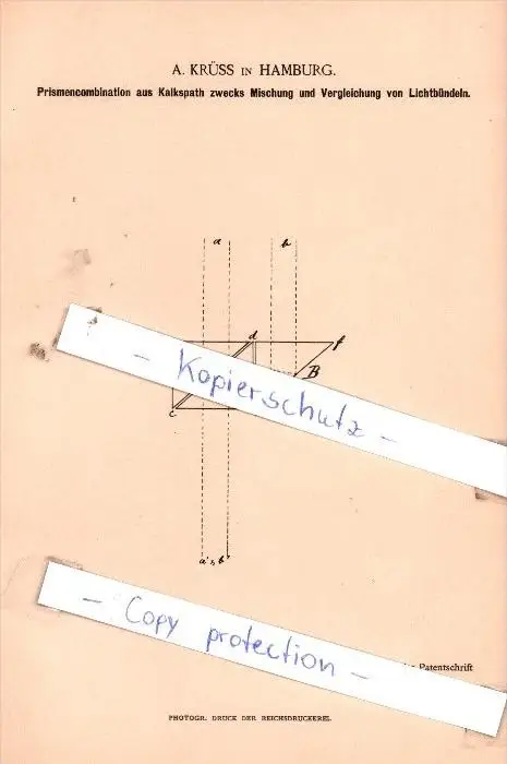 Original Patent - A. Krüss in Hamburg , 1887 , Prismencombination aus Kalkspath !!!