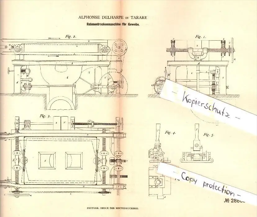 Original Patent - Alphonse Delharpe à Tarare , 1884 , Sèche-linge pour le tissu , textiles !!!