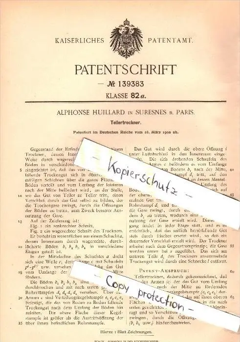 Original Patent - Alphonse Huillard à Suresnes , 1902 , sèche pour plaques !!!