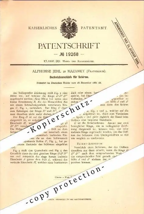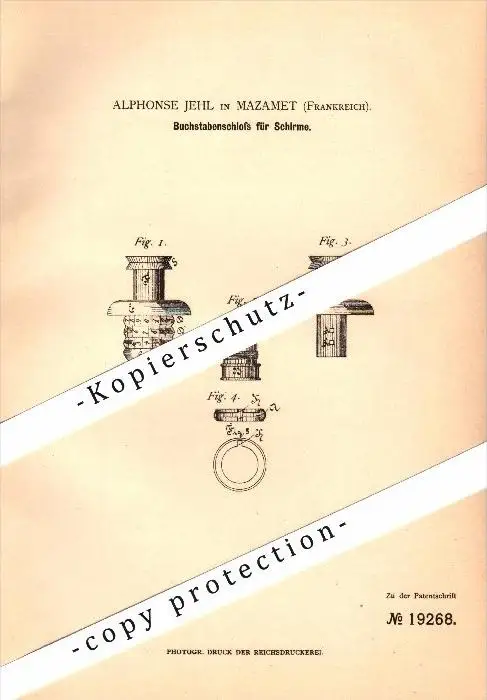 Original Patent - Alphonse Jehl à Mazamet , 1881 , Serrures de code pour écrans !!!