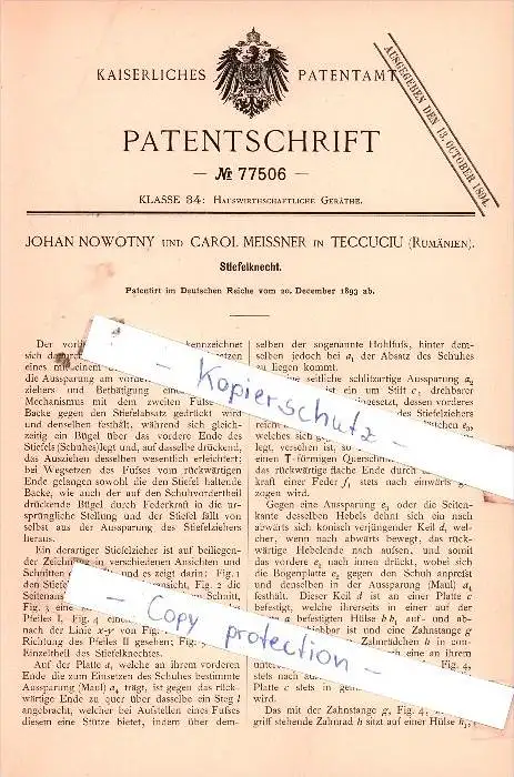 Original Patent - Arthur Samuel Francis Robinson in Wantage , Conty of Berks, England , 1894 , !!!