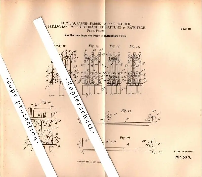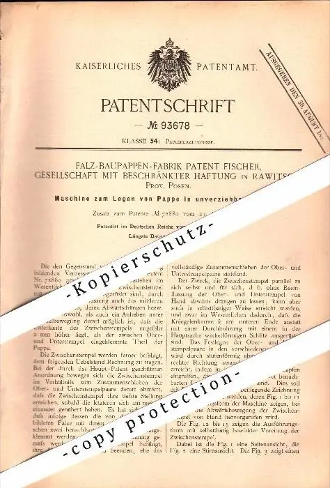 Original Patent - Baupappen-Fabrik Patent Fischer in Rawitsch / Rawicz , 1897 , Maschine für Pappe , Papierfabrik !!!