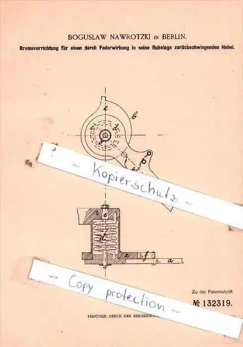Original Patent - Boguslaw Nawrotzki in Berlin , 1901 , Bremsvorrichtung !!!