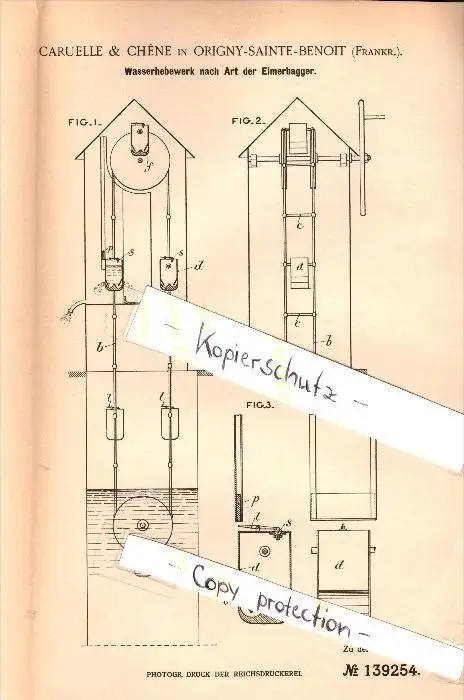 Original Patent - Caruelle & Chene à Origny-Sainte-Benoite , 1902 , Colonne d'eau !!!
