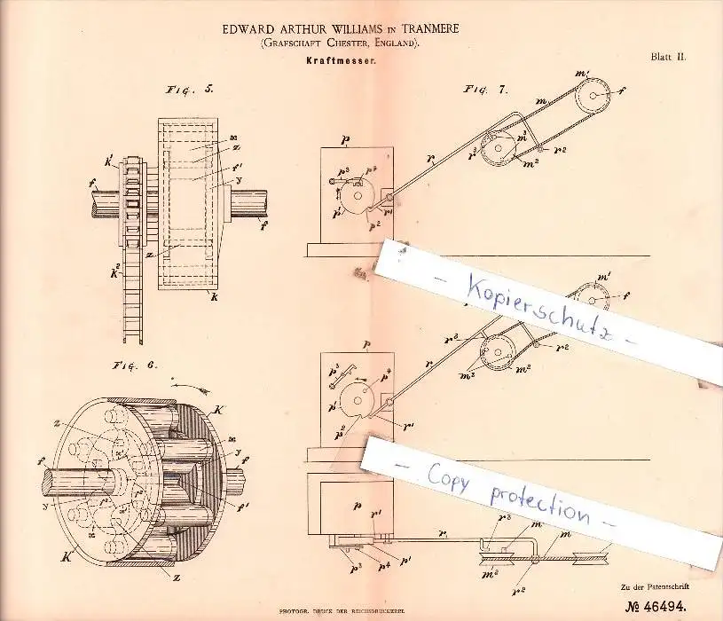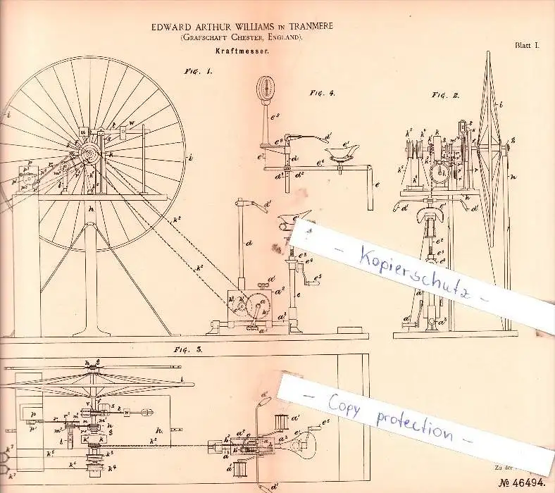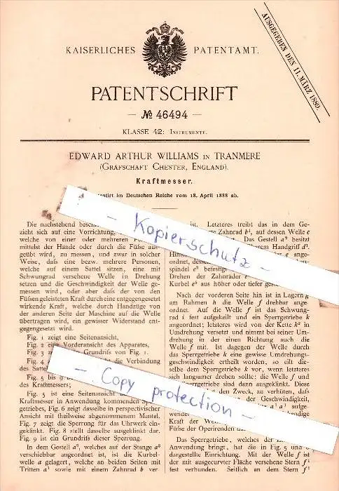 Original Patent - E. A. Williams in Tranmere , Grafschaft Chester, England , 1888 , Kraftmesser !!!