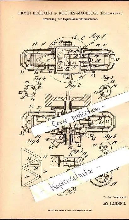 Original Patent - Firmin Brückert à Rousies b. Maubeuge , 1902 , Commande pour moteurs à explosion !!!