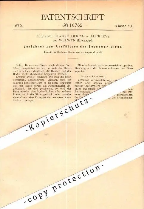 Patentinhaber: George Edward Dering in Lockleys b. Welwyn ,