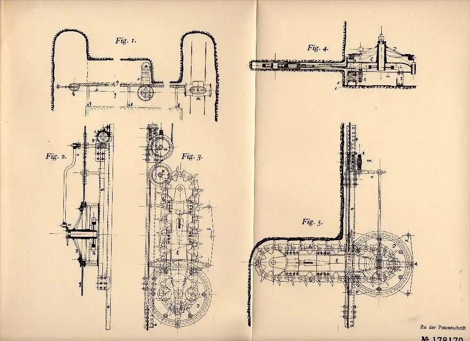 Patent: Kohlenschrämmaschine mit maschinellem Vorschub
