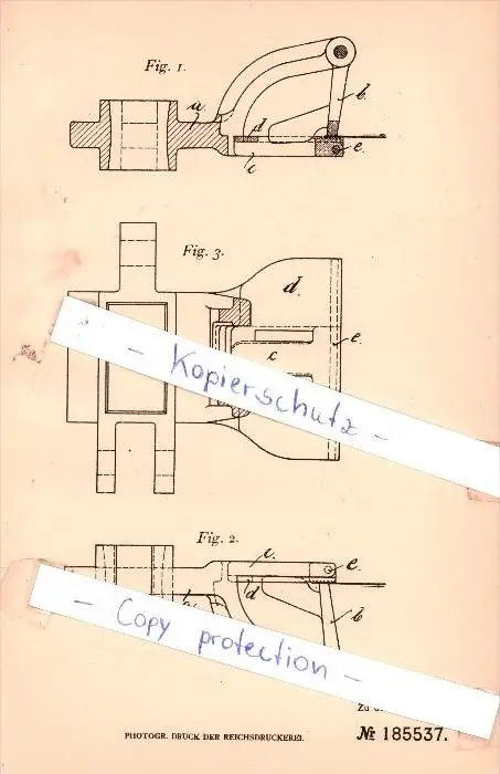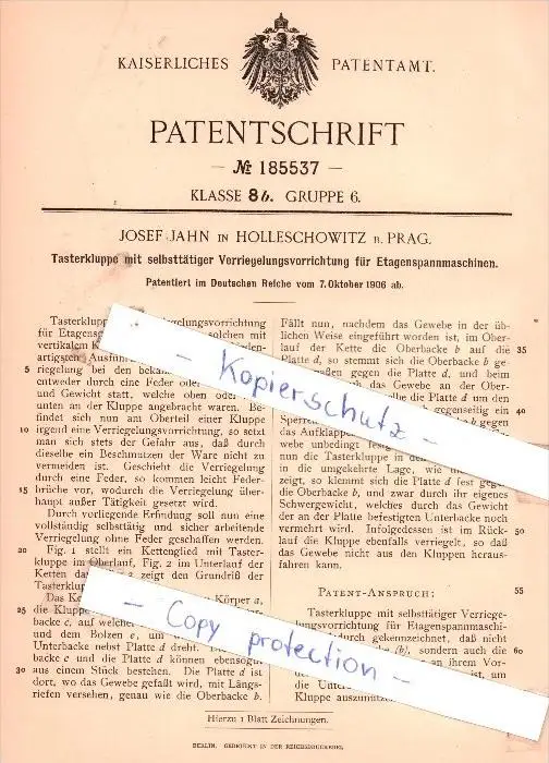 Original Patent - J. Jahn in Holleschowitz b. Prag , 1906 , Tasterkluppe mit Verriegelungsvorrichtung !!!