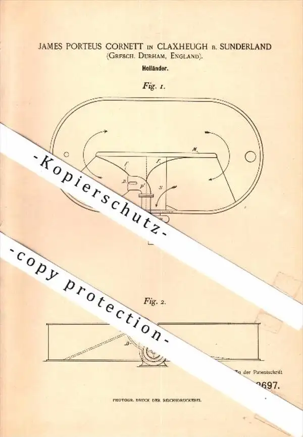 Original Patent - J.P. Cornett in Claxheugh / South Hylton b. Sunderland , 1894 , Bleaching of fabric and paper , Durham