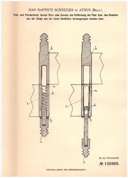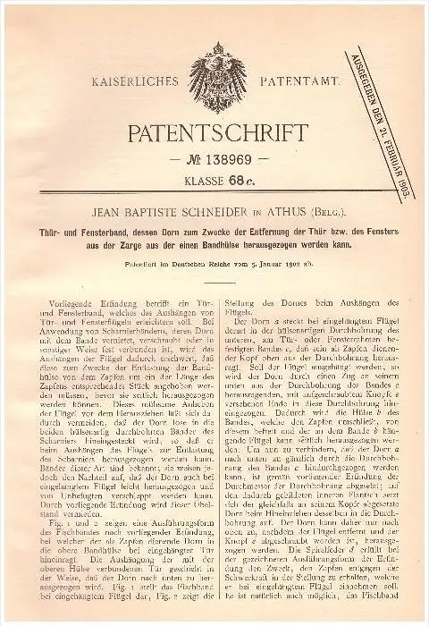 Original Patent - J.P. Schneider in Athus , 1902 , Fensterband , Fensterbau , Fenster !!!