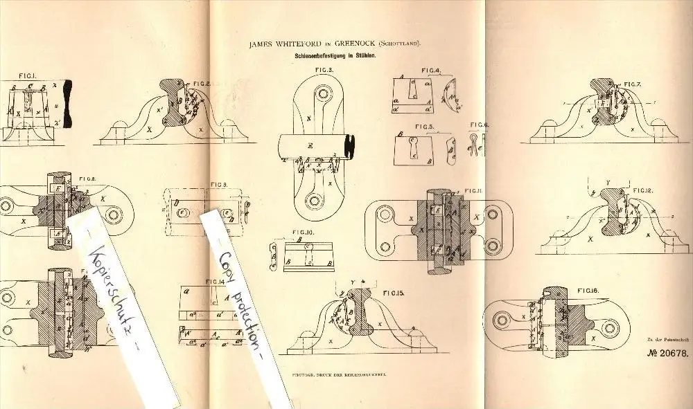 Original Patent - James Whiteford in Greenock , Scotland , 1882 , Rail fastening for railway , Inverkip !!!