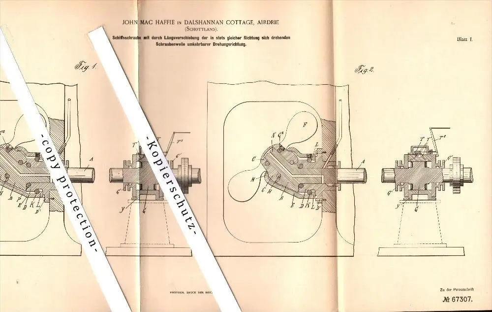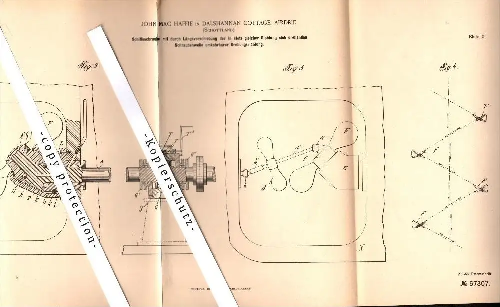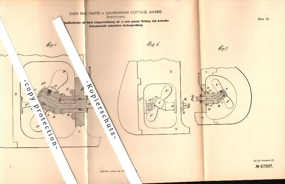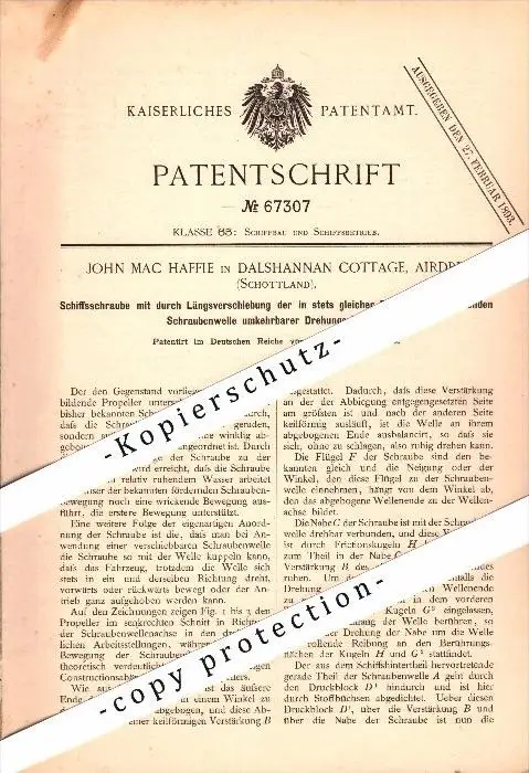 Original Patent - John Mac Haffie in Dalshannan Cottage , Airdrie , 1891 , ship's propeller , Scotland !!!
