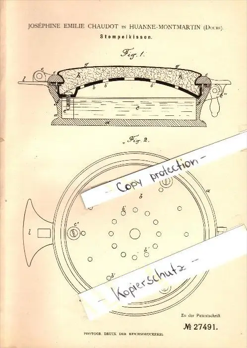 Original Patent - Joséphine Chaudot à Huanne-Montmartin , 1883 , Inkpad , timbre !!!