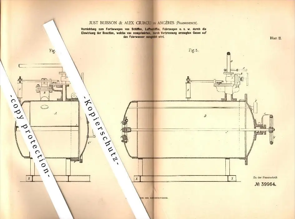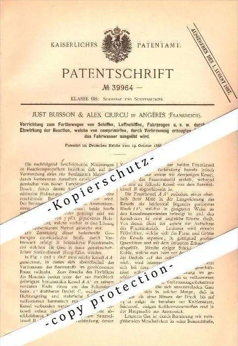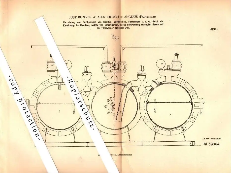 Original Patent - Just Buisson & Alex Ciurcu à Angers , 1886 , Appareil pour les navires et aéronefs , Angeres !!!