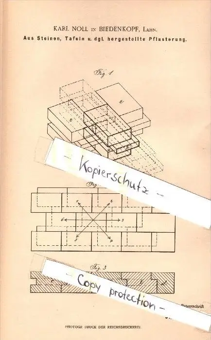 Original Patent - Karl Noll in Biedenkopf b. Marburg , 1901 , Pflasterung aus Steinen und Tafeln , Straßenbau !!!