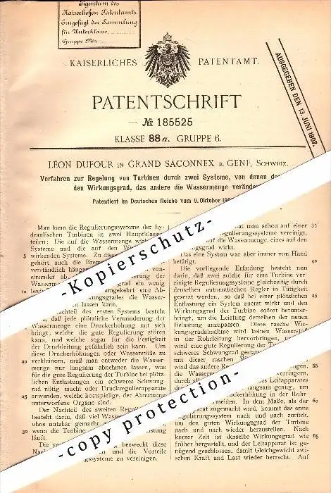 Original Patent - Léon Dufour in Le Grand-Saconnex b. Genf , 1906 , Regelung von Turbinen !!!