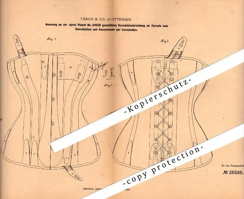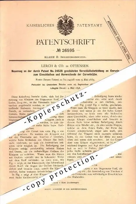 Original Patent - Lerch & Co in Ottensen b. Hamburg , 1883 , Corset , Korsett !!