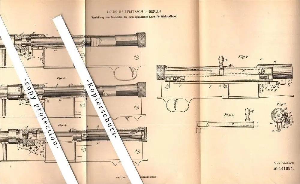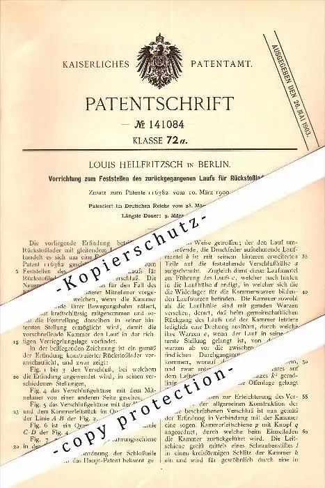 Original Patent - Louis Hellfritzsch in Berlin , 1902 , Pistole , Rückstoßlader , Waffe , pistol !!!
