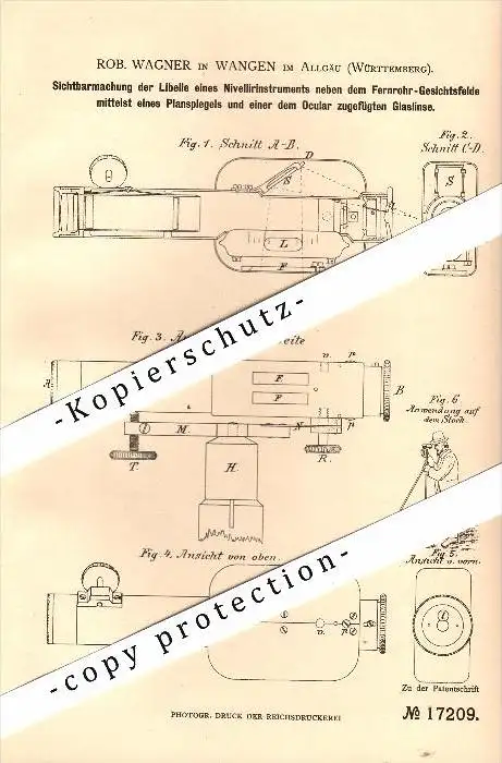 Original Patent - R. Wagner in Wangen im Allgäu , 1881 , Nivellierinstrument mit Libelle und Okular !!!