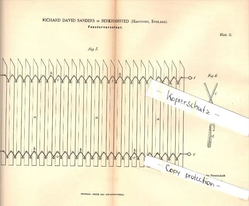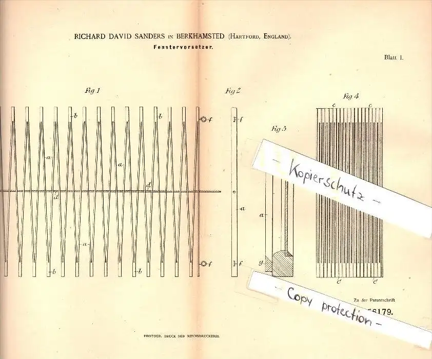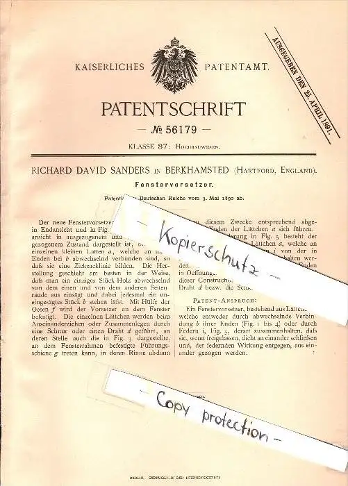 Original Patent - Richard David Sanders in Berkhamsted , 1890 , Blinds for windows !!!