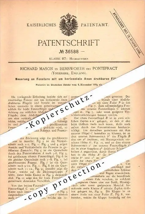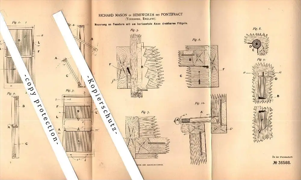 Original Patent - Richard Mason in Hemsworth b. Pontefract , Yorkshire , 1885 , Window with rotary wings !!!