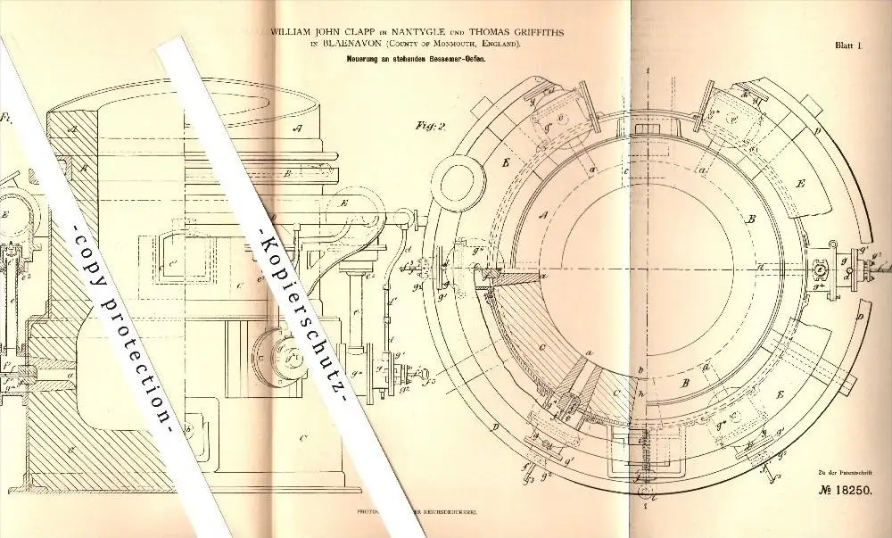 Original Patent - Th. Griffiths in Blaenavon and W.J. Clapp in Nantyglo , 1881 , Oven for mining !!!