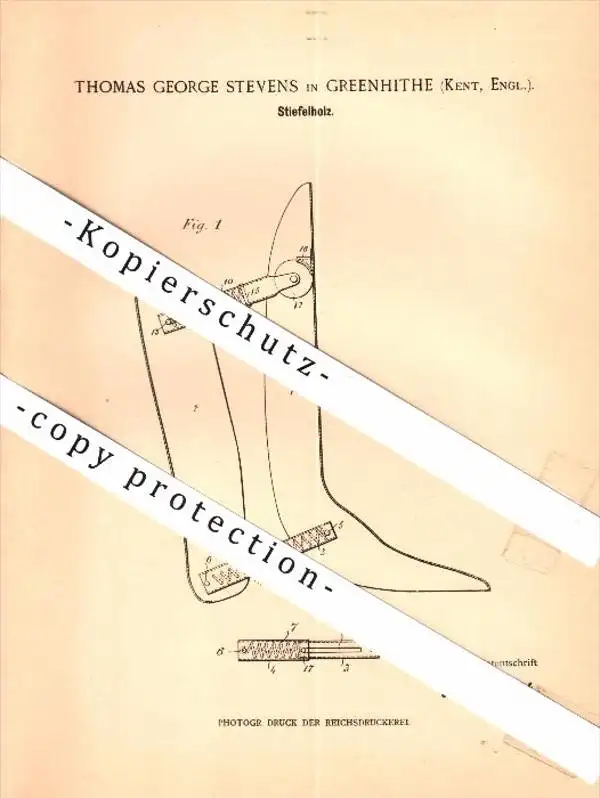 Original Patent - Thomas George Stevens in Greenhithe , Kent , 1899 , wood for boots !!!