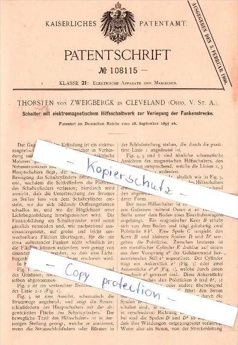 Original Patent - Thorsten von Zweigbergk in Cleveland , Ohio, V. St. A. , 1897 , !!!