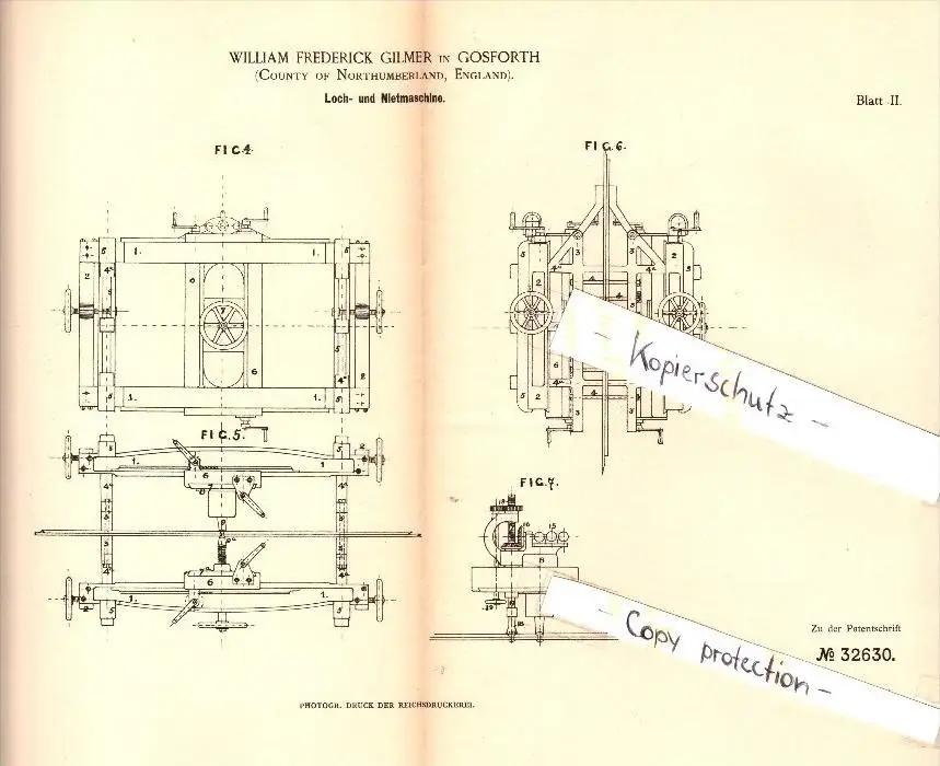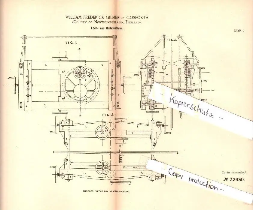 Original Patent - W. Gilmer in Gosforth , England , 1884 , Punching and riveting machine !!!