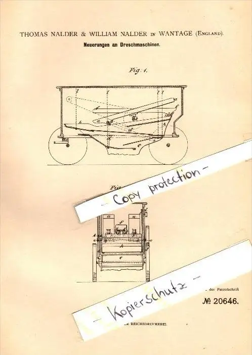 Original Patent - William Nadler in Wantage , 1882 , thresher , agriculture !!!