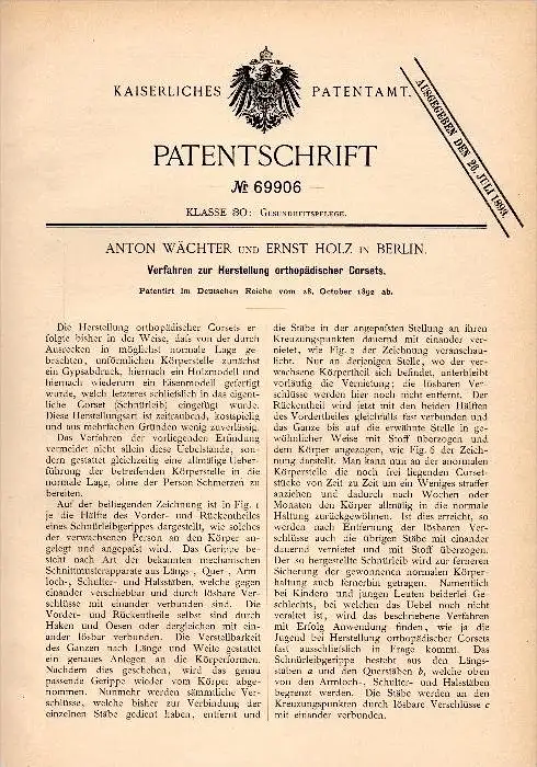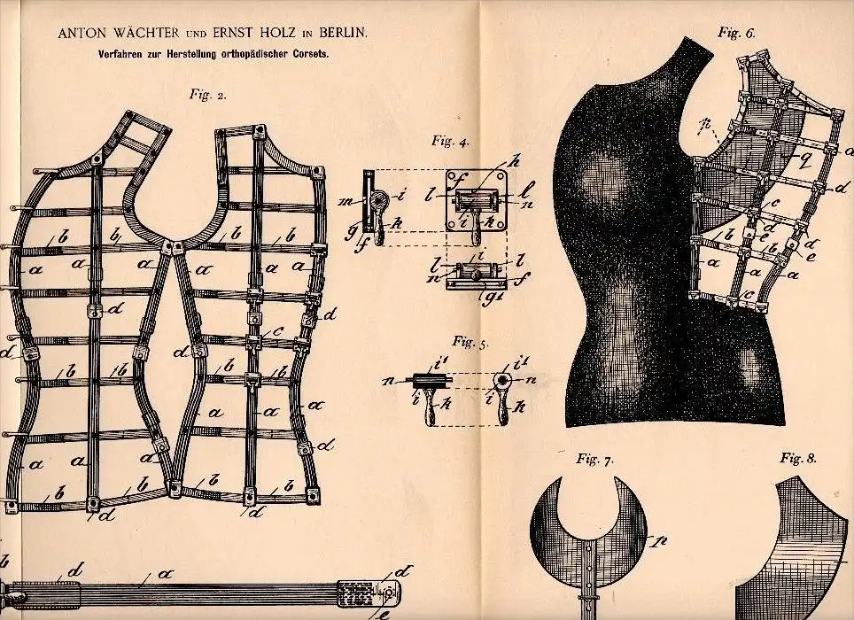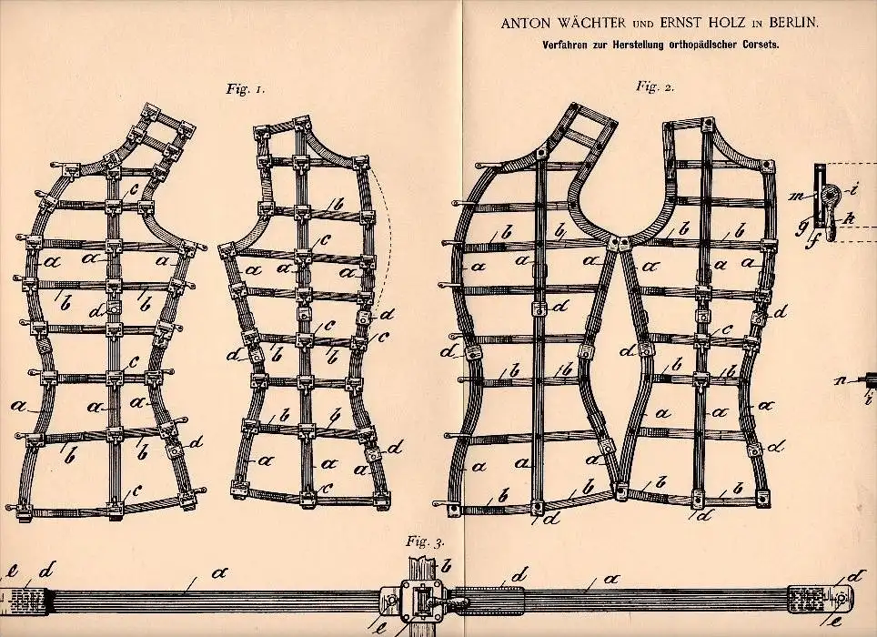 Original Patent - orthopädisches Korsett , corset , corsage , 1882 , A. Wächter und E. Holz in Berlin , Orthopädie !!!