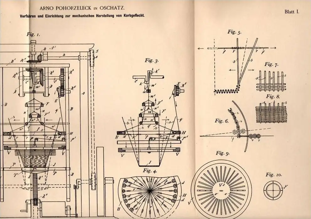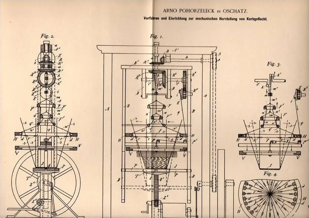 Original Patentschrift - A. Pohorzeleck in Oschatz , 1898 , Korbgeflecht - Herstellung , Korb , Körbe , Flechterei !!!