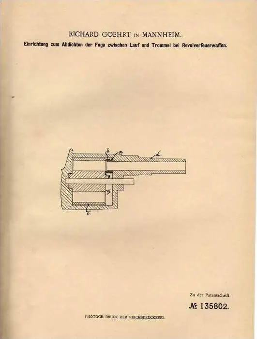 Patent: Einrichtung zum Abdichten der uge zwischen Lauf und Trommel bei Revolverwaffen