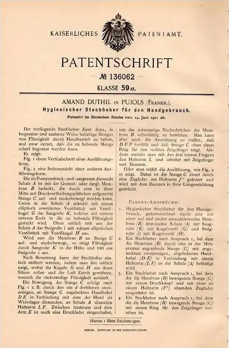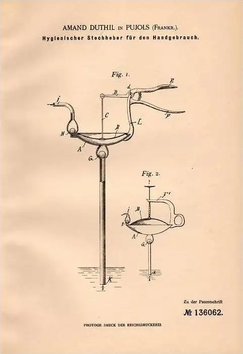 Original Patentschrift - Amand Duthil in Pujols , 1901 , Stechheber für Handgebrauch !!!