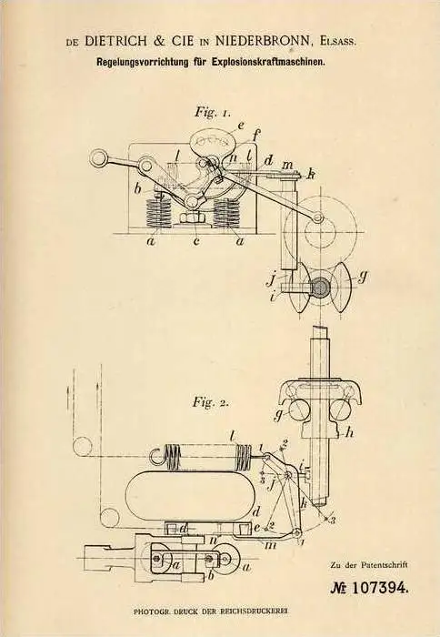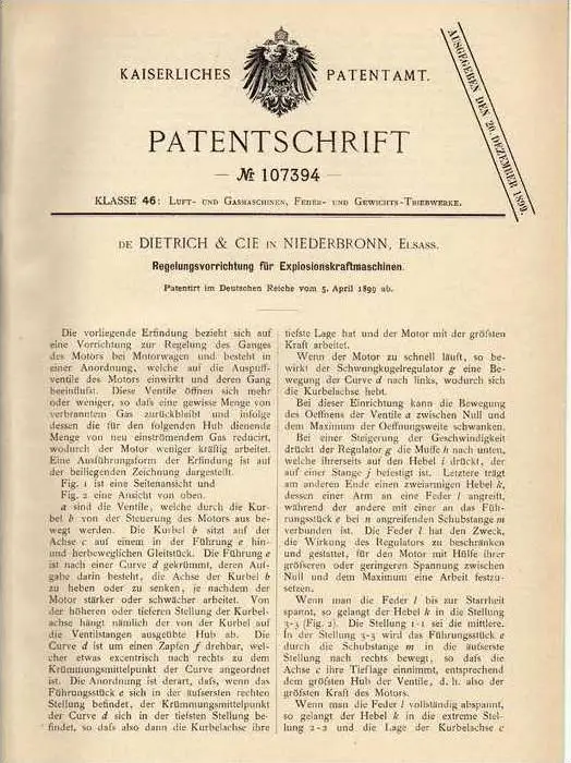 Original Patentschrift - Dietrich & Cie in Niederbronn , Elsass ,1899, Regelung - Explosionskraftmaschinen , Automobile