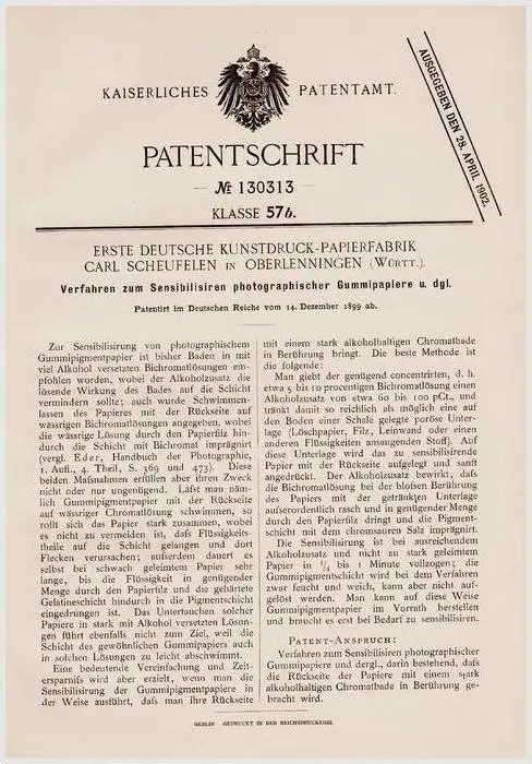 Patent: Verfahren zum Sensibilisieren photographischer Gummipapiere