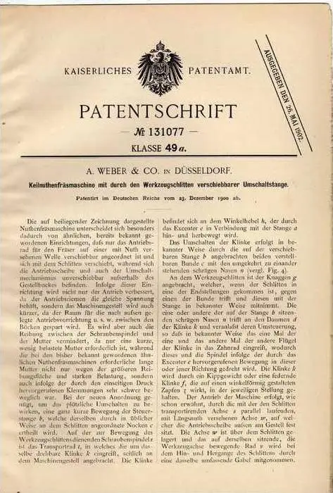 Patentinhaber: A. Weber & Co in Düsseldorf