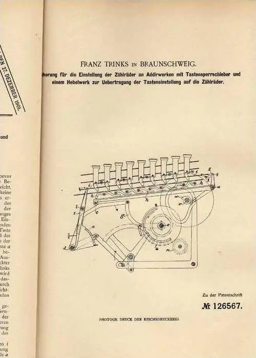 Patent: Sicherung für die Einstellung der Zählräder an Addiwerken