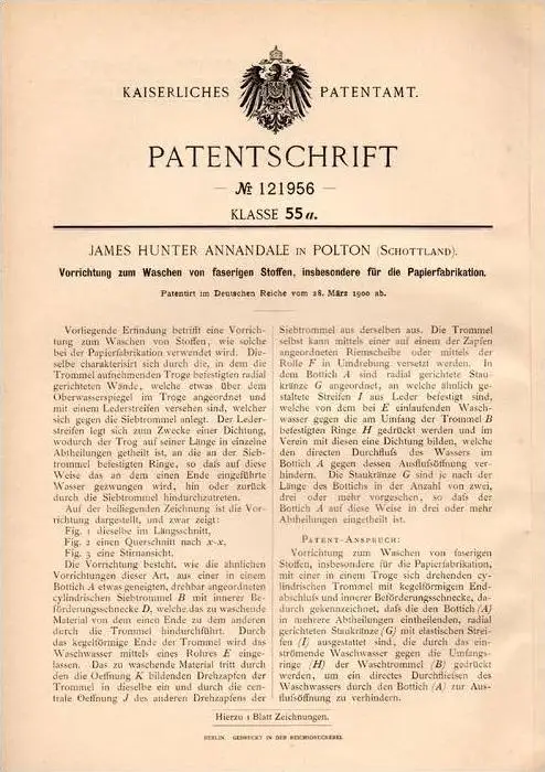 Original Patentschrift - J. Annadale in Polton , Scotland , 1900 , Machine for Paper - manufacturing , Lasswade !!!