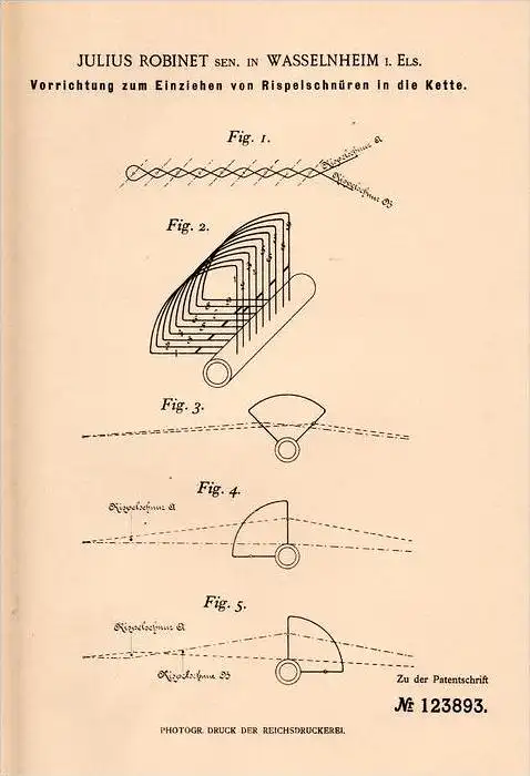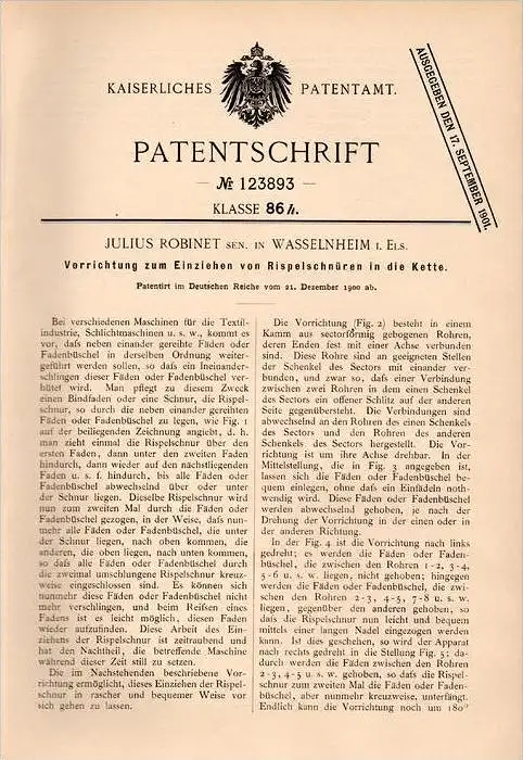 Original Patentschrift - J. Robinet à Wasselonne i. Els. ,1900, Appareil pour le textile, fil , Tissue , Wasselnheim !!!