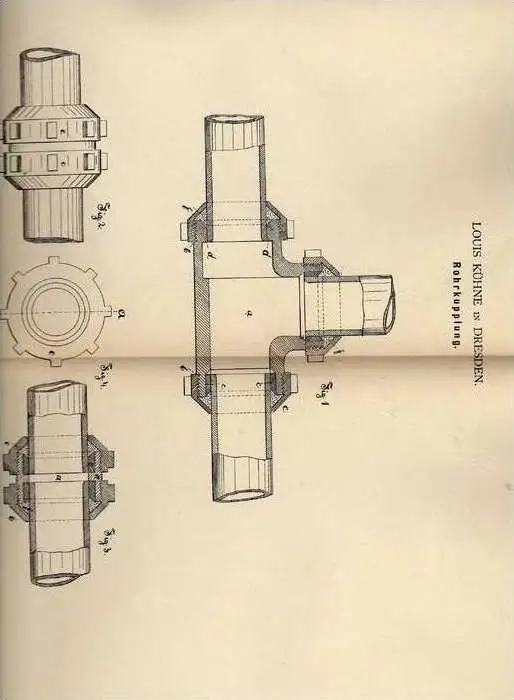 Original Patentschrift - L. Kühne in Dresden , 1882 , Rohrkupplung , Klempnerei !!!